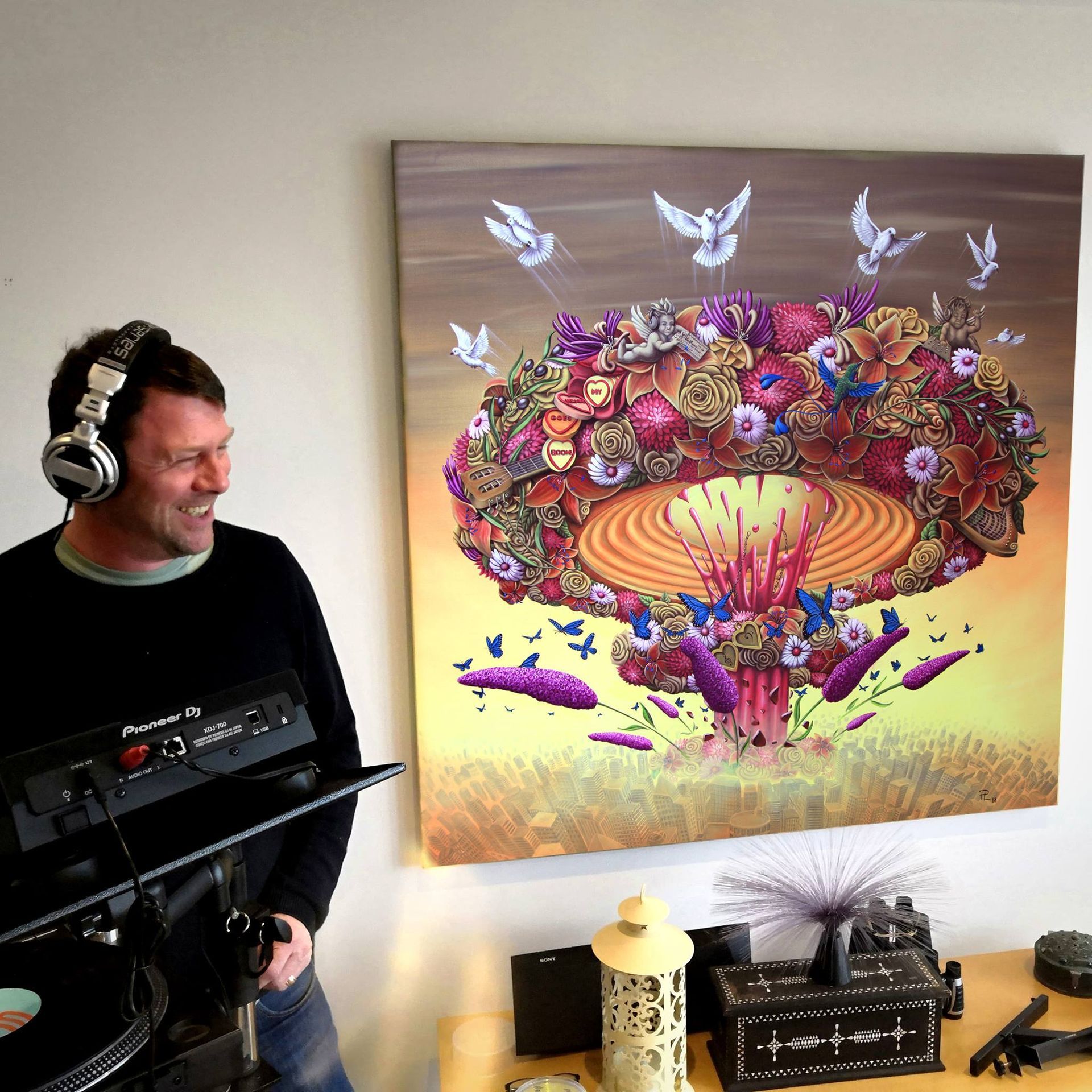 "I originally started painting to complement and reflect the feeling that music evokes in people at parties, and reflect the all-engulfing sensation of otherworldly connection and euphoria visually. There is still an element of this in my work, but tuned for the living or work space"