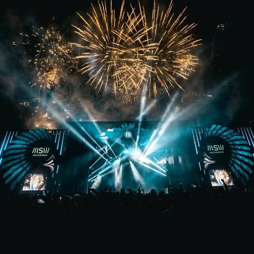 Fireworks on the closing night behind the biggest stage set in Portugal by Nagual Creations
